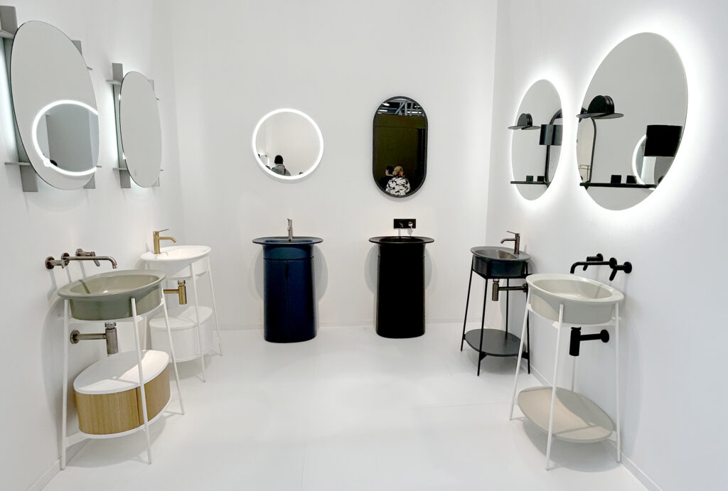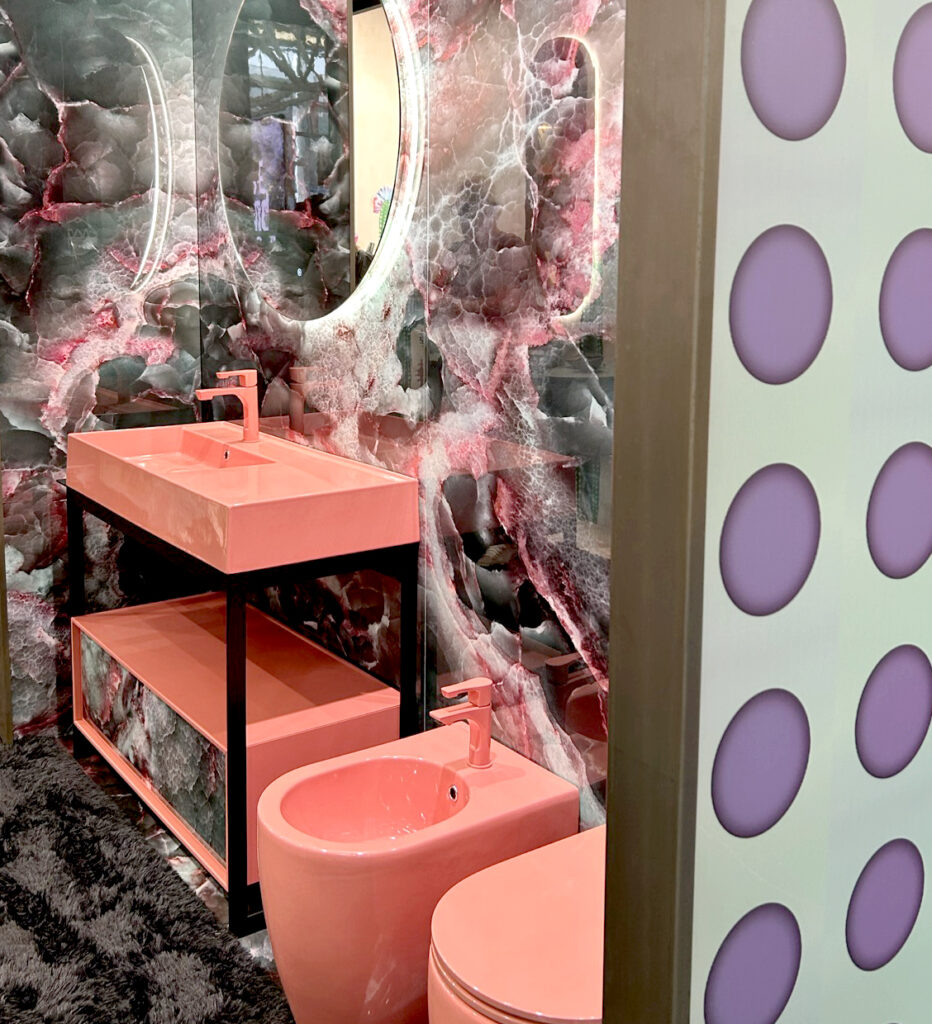 Korkeakiiltoiset pinnat olivat vahvasti esillä Cersaien messuilla – sekä rohkeissa että pehmeämmissä sävyissä. Näytteilleasettajilta löytyi kaikkea glossisen sinisistä kylpyammeista pastellinsävyisiin pesualtaisiin. Väriä käytetään nyt sekä tehosteena että kokonaisvaltaisena ratkaisuna, tuomaan kylpyhuoneeseen persoonallisuutta ja leikkisyyttä. Valitsetko siis näyttävän värisen kalusteen, Art Deco -henkiset yksityiskohdat – vai kenties molemmat?