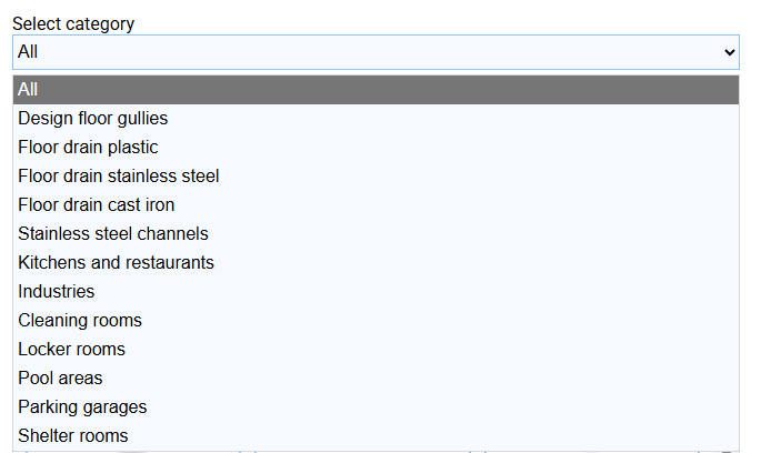 Uusi Selection Tool sisältää myös tuotteita, jotka eivät aiemmin olleet saatavilla työkalussa. Täysin uusia lisäyksiä ovat mm. Purus lattiakouru 150, Siivousallas. Lisäksi uudessa versiossa ovat mukana muoviset lattiakaivot Njord ja Hild, joita voidaan säätää korkeussuunnassa ja kallistaa asennuksen vaatimusten mukaisesti.
